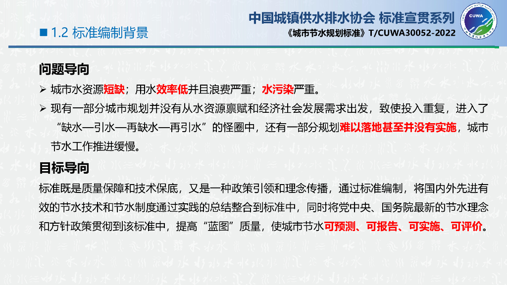 中国城镇供水排水协会:《城市节水规划标准》T/CUWA 30052-2022标准宣贯.pdf