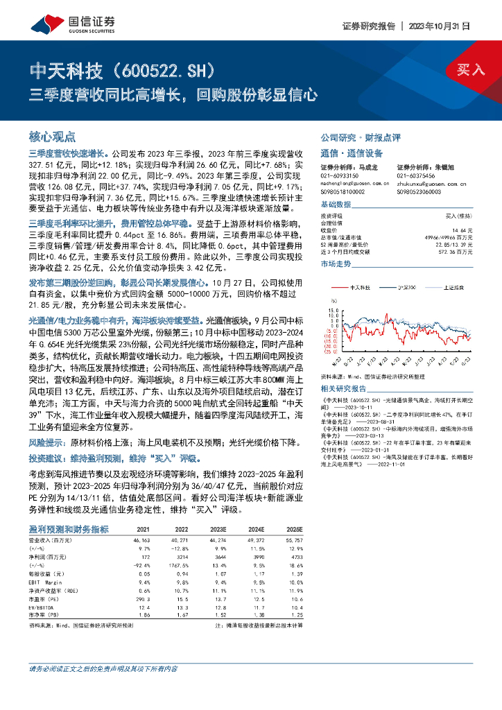 国信证券:中天科技(600522)-三季度营收同比高增长,回购股份彰显信心.pdf