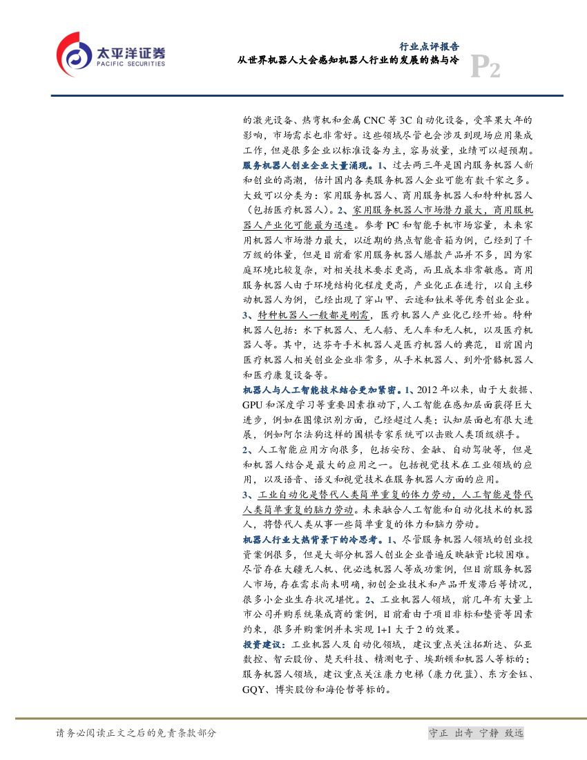 太平洋证券:机械设备:从世界机器人大会感知机器人行业的发展的热与冷.pdf