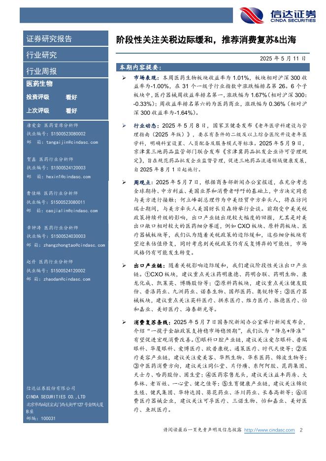 信达证券:医药生物行业周报:阶段性关注关税边际缓和,推荐消费复苏&出海.pdf
