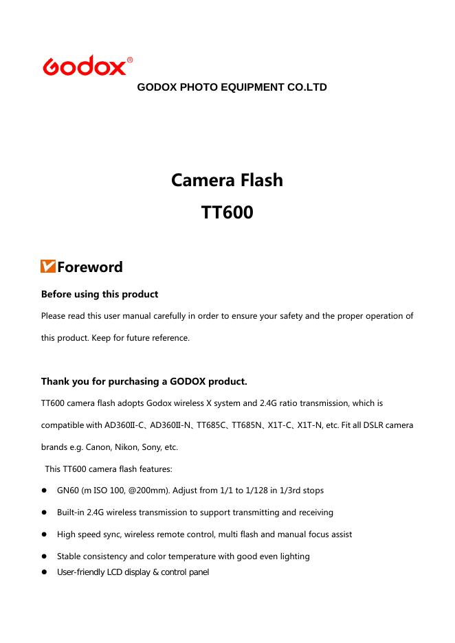 GODOX TT600相机闪光灯用户手册.pdf