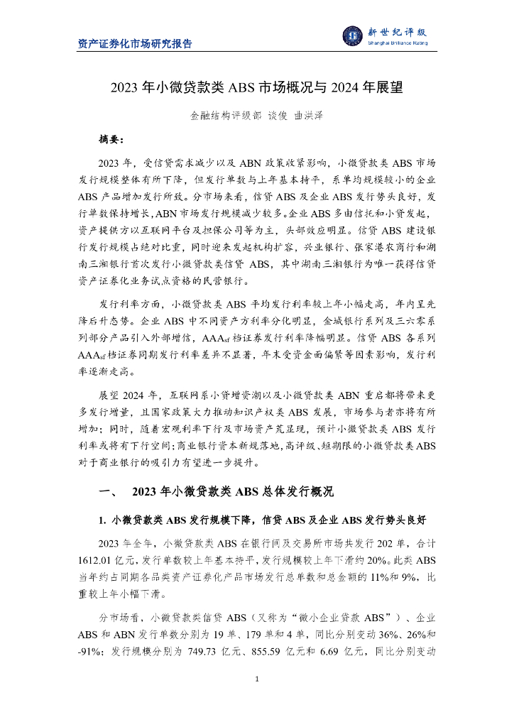 新世纪评级:2023年小微贷款类ABS市场概况与2024年展望报告.pdf