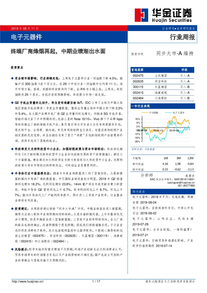 华金证券:电子元器件行业周报:终端厂商烽烟再起,中期业绩渐出水面.pdf