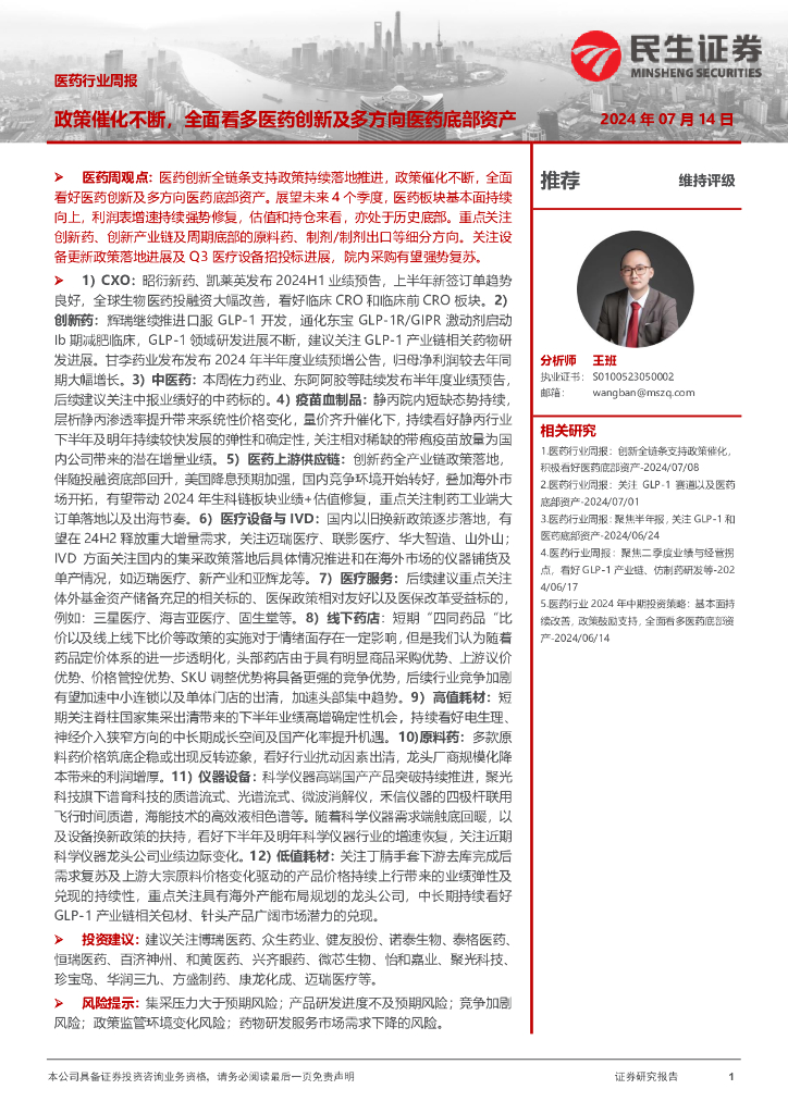 民生证券:医药行业周报:政策催化不断,全面看多医药创新及多方向医药底部资产.pdf