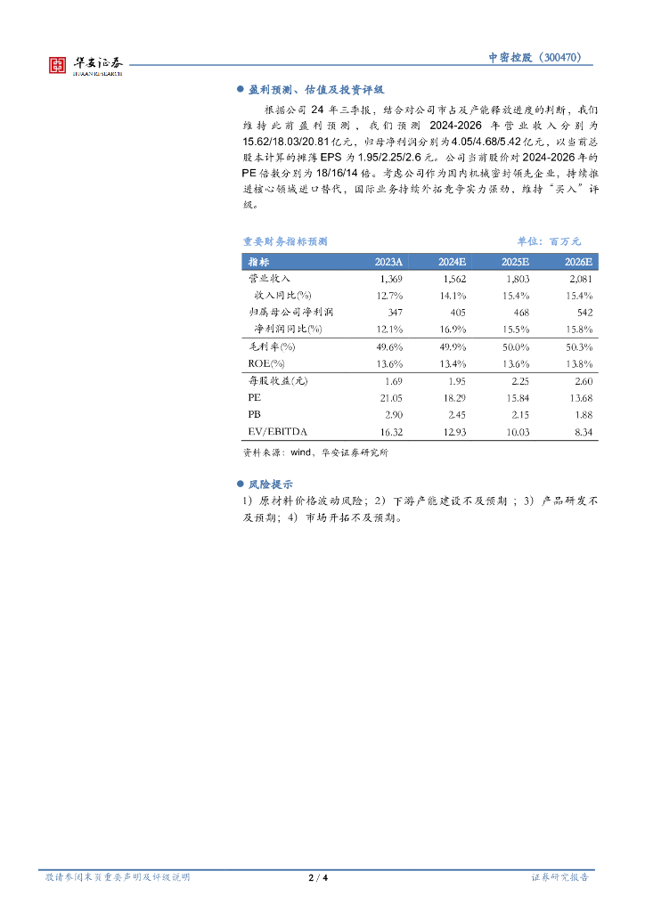 华安证券:中密控股(300470)-24三季报点评:业绩符合预期,持续稳健增长.pdf