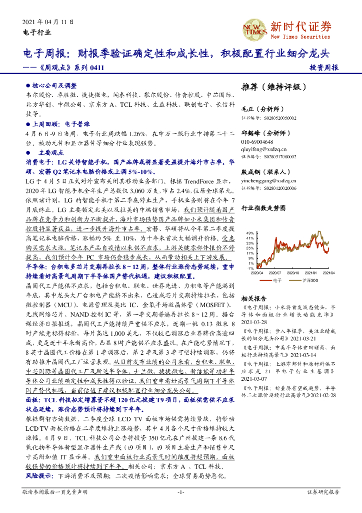 新时代证券:电子周报:财报季验证确定性和成长性,积极配置行业细分龙头.pdf