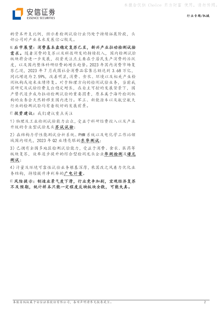 安信证券:检测试验板块2023年中报总结:业绩稳定增长,行业拓展趋势延续.pdf