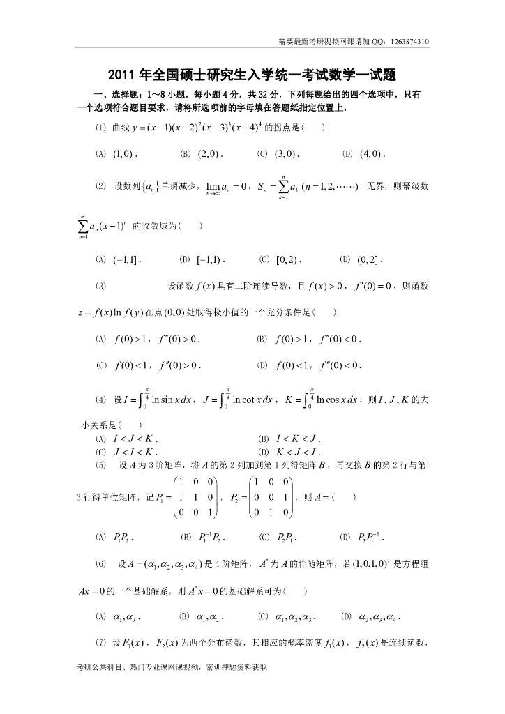 2011考研数一真题及解析.pdf
