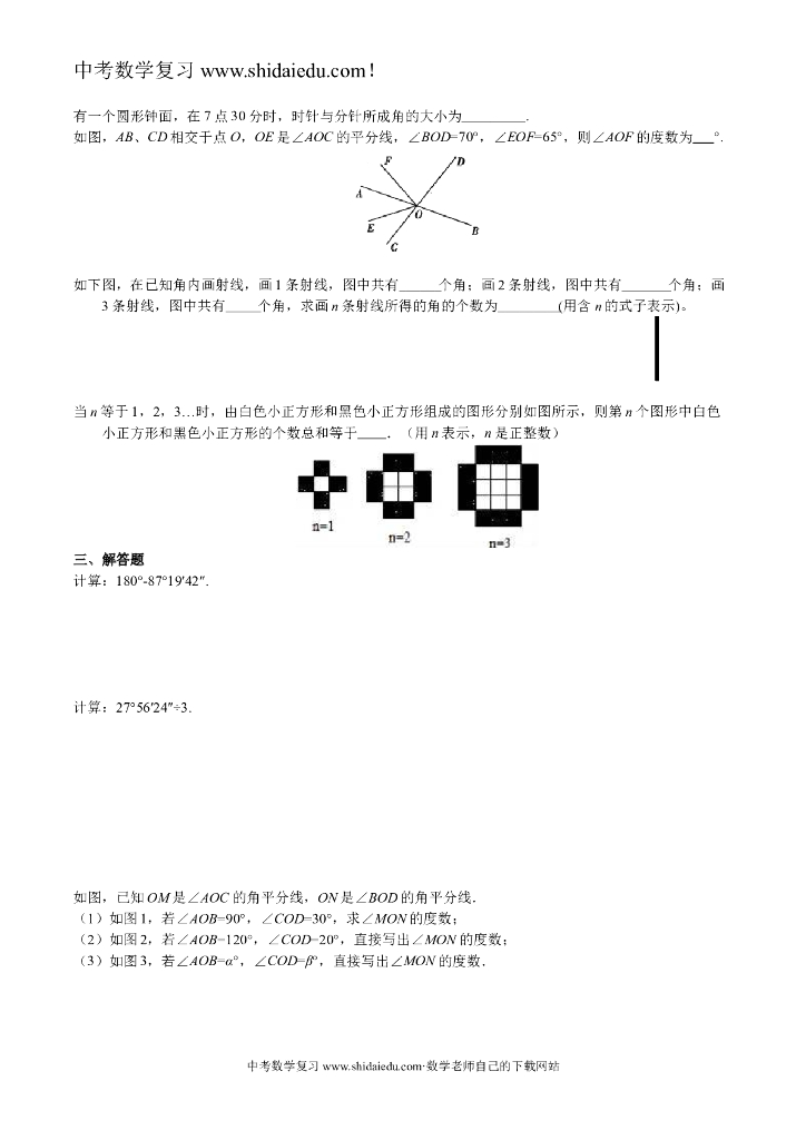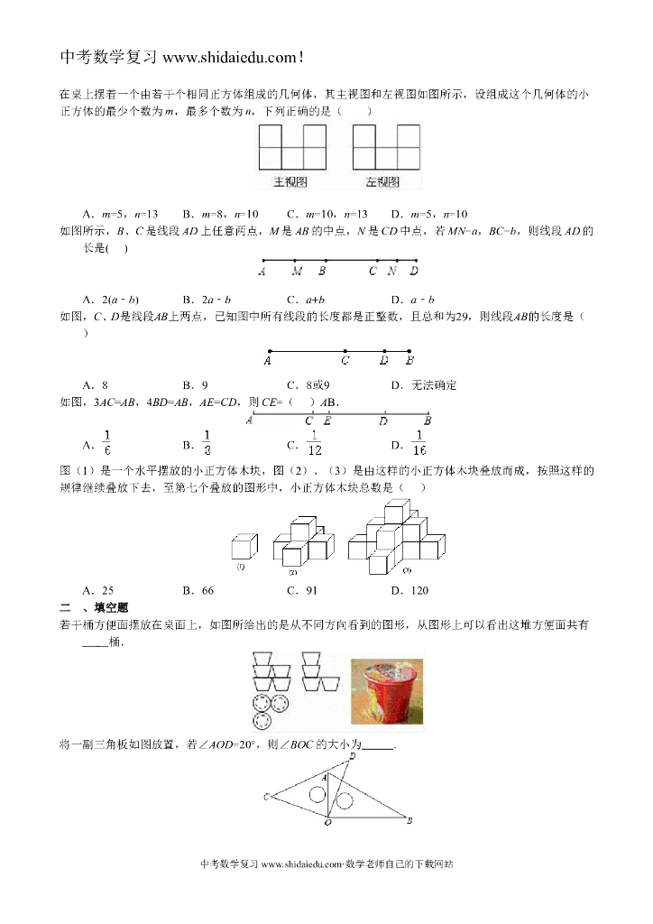 人教版中考数学一轮复习《几何图形初步》同步练习(含答案).doc