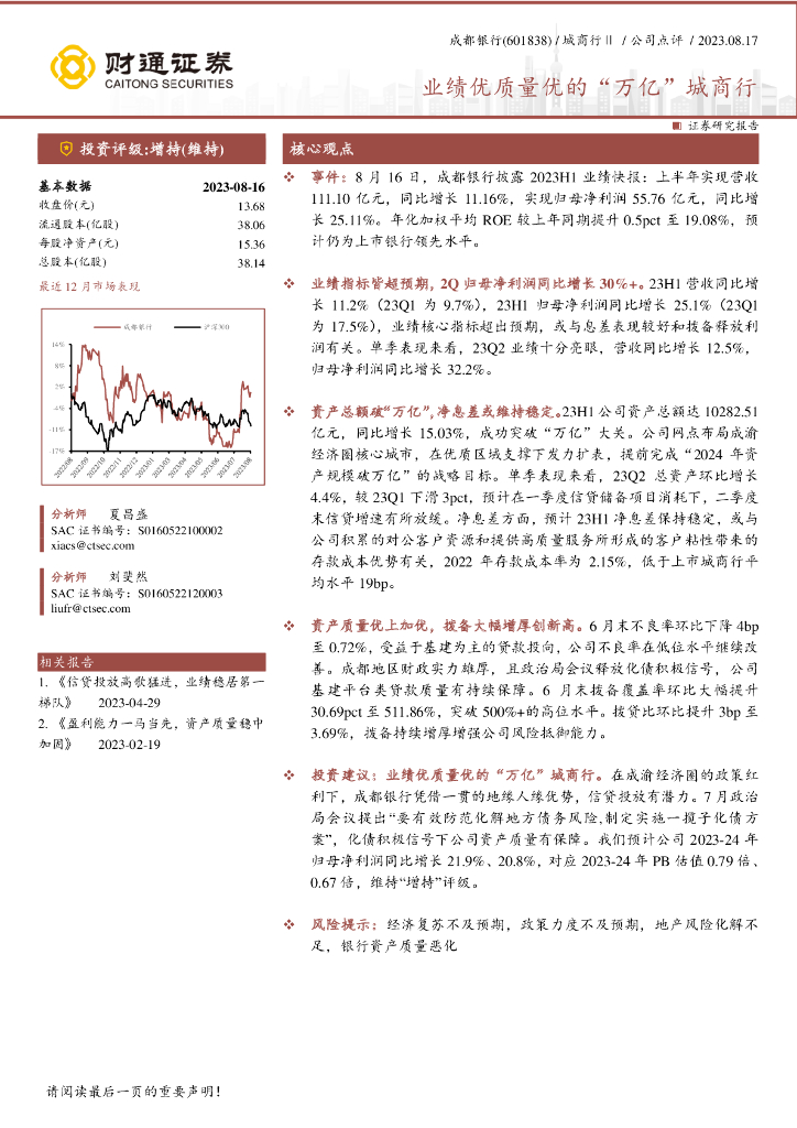 财通证券:成都银行(601838)-业绩优质量优的“万亿”城商行.pdf