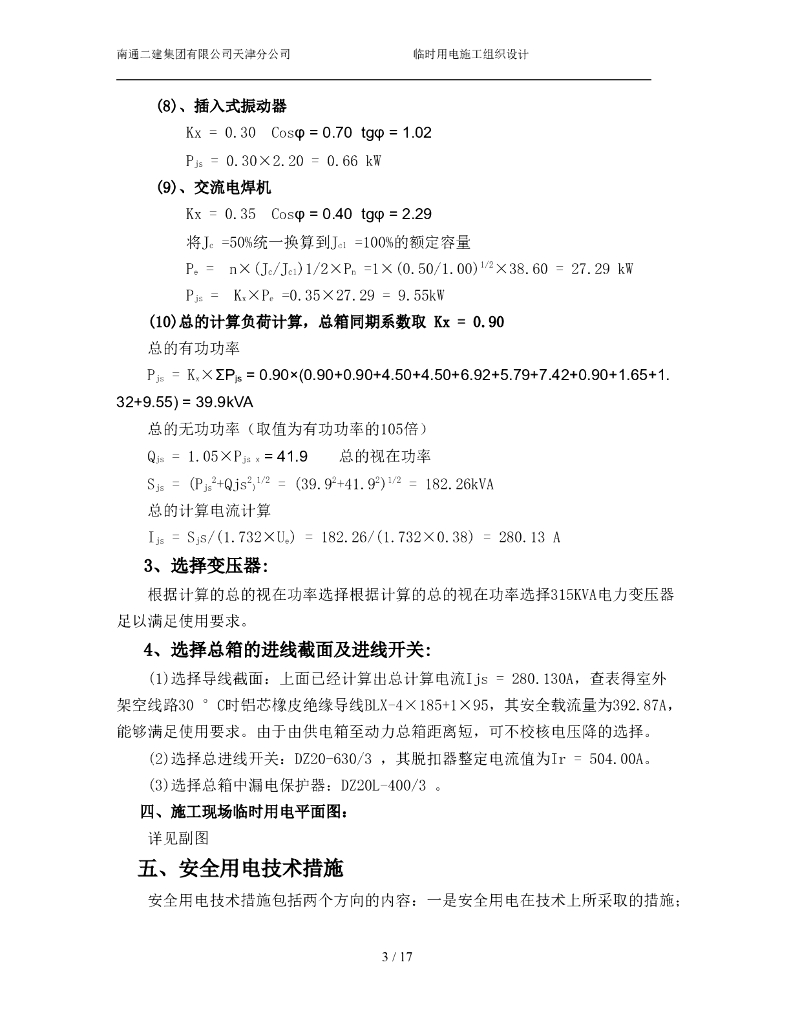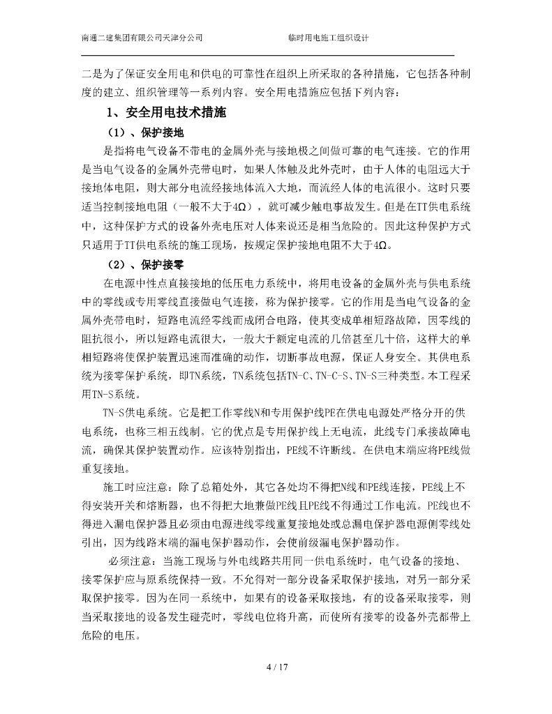 天津新建厂房工程施工临时用电专项方案.doc