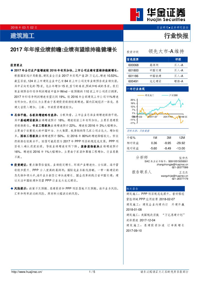 华金证券:建筑施工:2017年年报业绩前瞻:业绩有望维持稳健增长.pdf