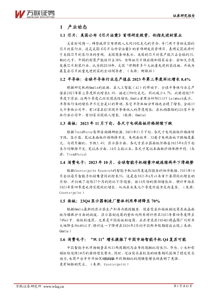 万联证券:电子行业周观点:消费电子及半导体领域持续复苏.pdf