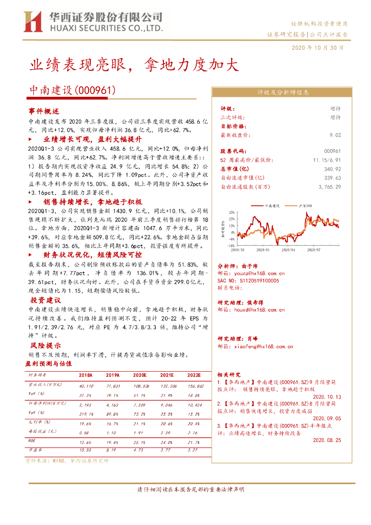 华西证券:中南建设(000961)-业绩表现亮眼,拿地力度加大.pdf