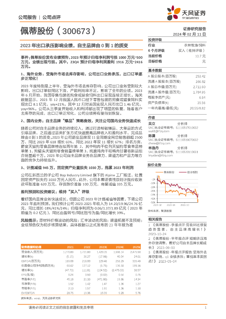 天风证券:佩蒂股份(300673)-2023年出口承压影响业绩,自主品牌由0到1的质变.pdf