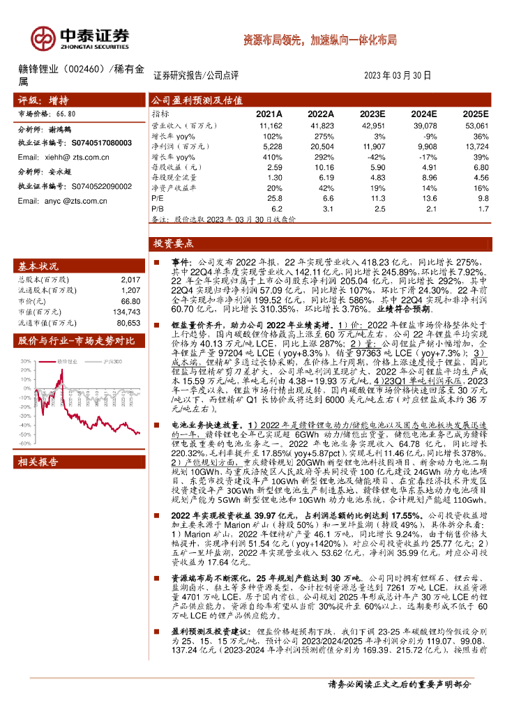 中泰证券:赣锋锂业(002460)-资源布局领先,加速纵向一体化布局.pdf