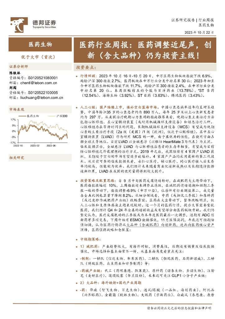 德邦证券:医药行业周报:医药调整近尾声,创新(含大品种)仍为投资主线!.pdf