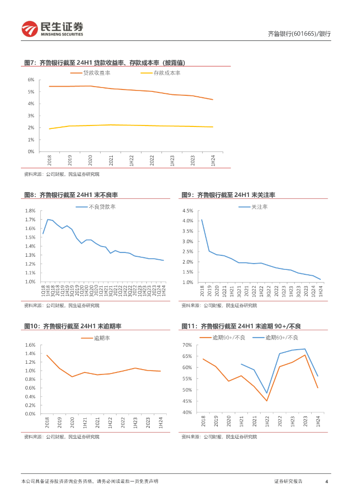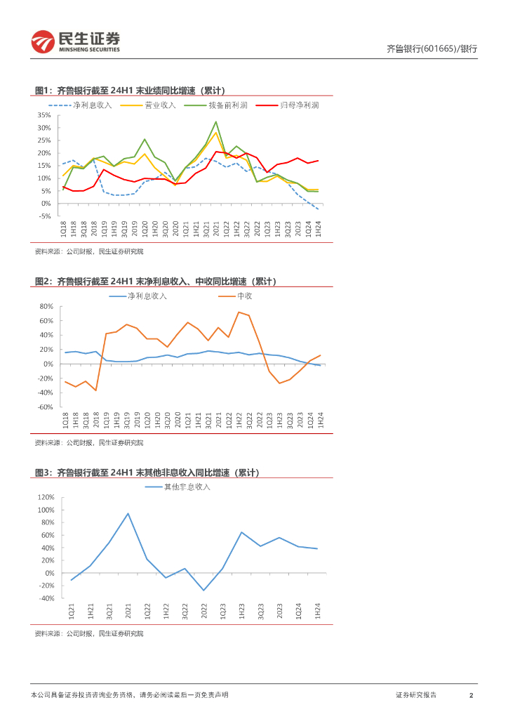 民生证券:齐鲁银行(601665)-2024年半年报点评:规模与业绩高增,资产质量改善.pdf