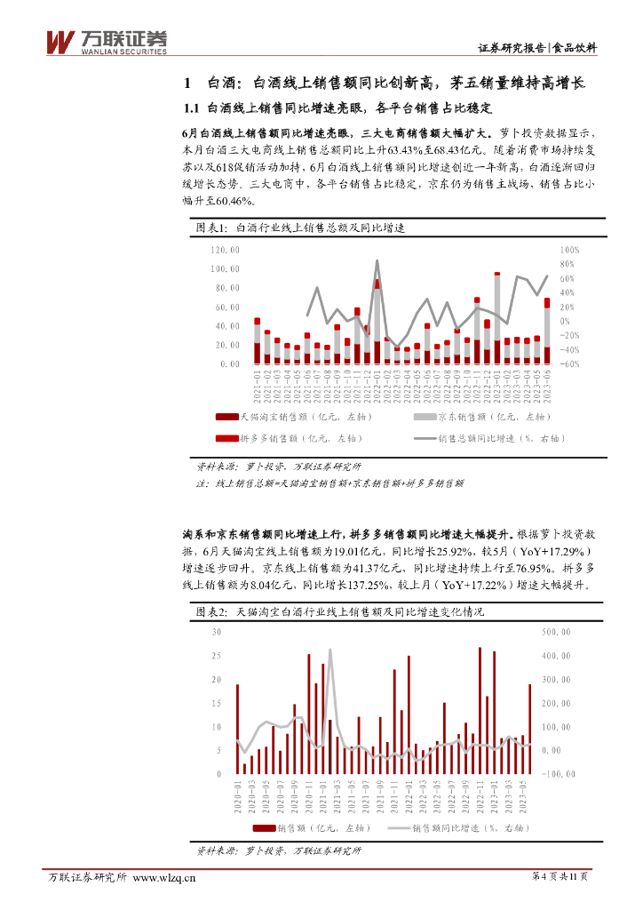 万联证券:食品饮料行业电商销售数据跟踪报告:6月白酒销售额同比创新高,啤酒同比跌幅收窄.pdf
