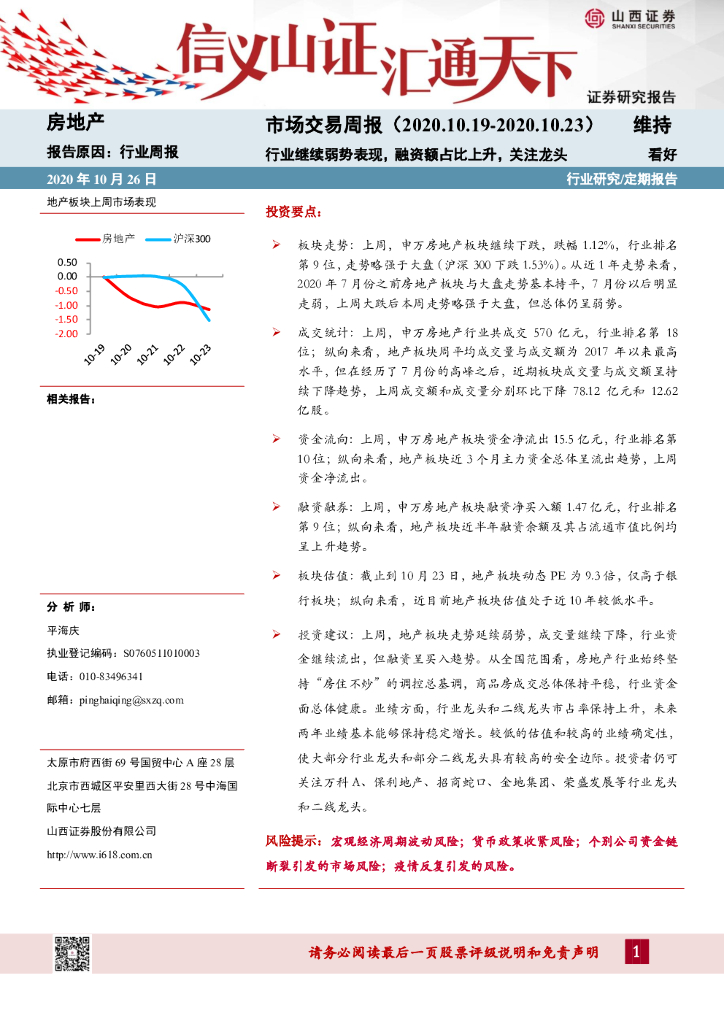 山西证券:房地产-市场交易周报:行业继续弱势表现,融资额占比上升,关注龙头.pdf