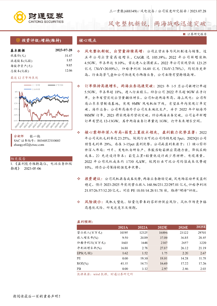 财通证券:三一重能(688349)-风电整机新锐,两海战略迅速突破.pdf