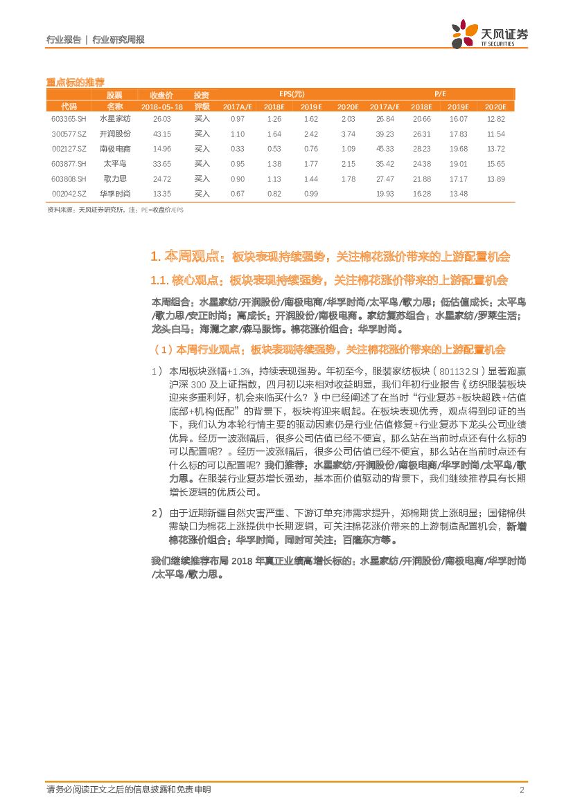 天风证券:纺织服装行业周报:板块表现持续强势,关注棉花涨价带来的上游制造配置机会.pdf