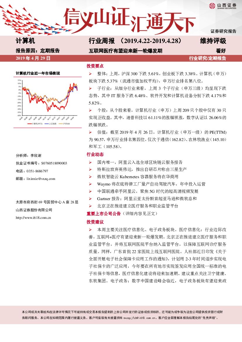山西证券:计算机行业周报:互联网医疗有望迎来新一轮爆发期.pdf