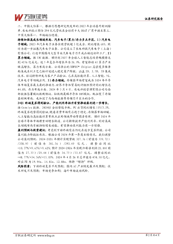 万联证券:长电科技(600584)-点评报告:24Q1扣非同比大幅增长,持续加强高增长领域布局.pdf