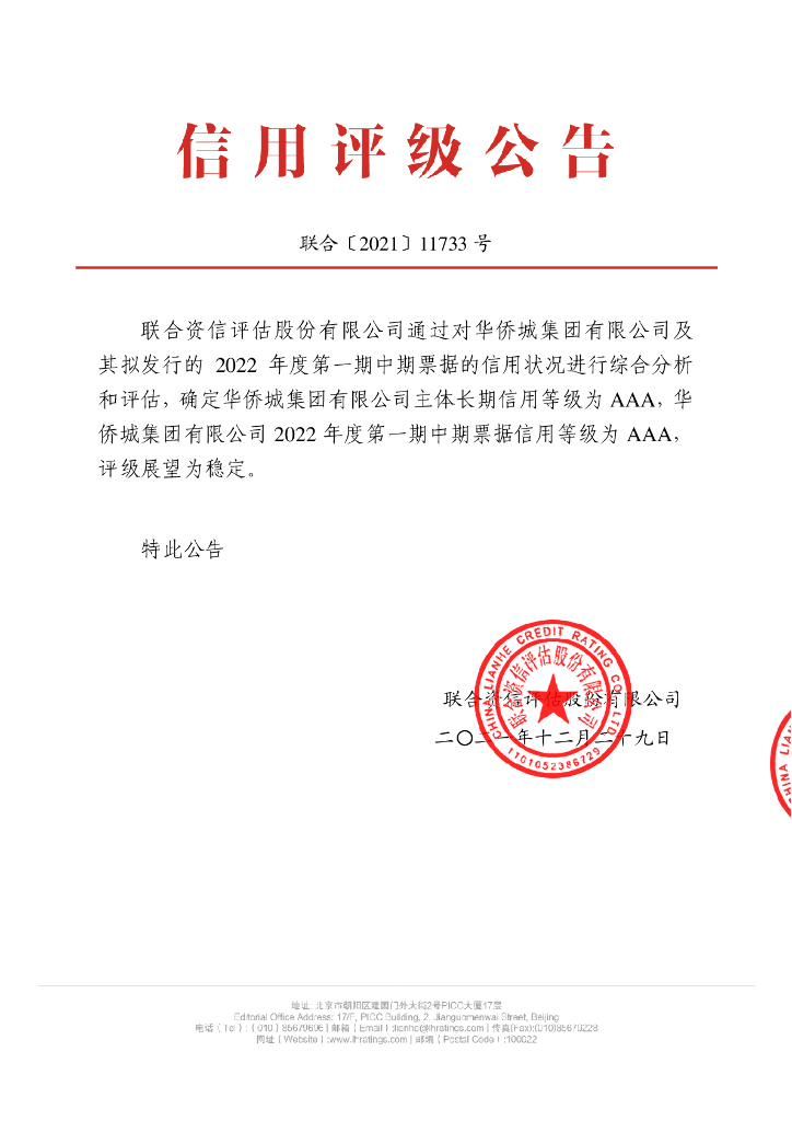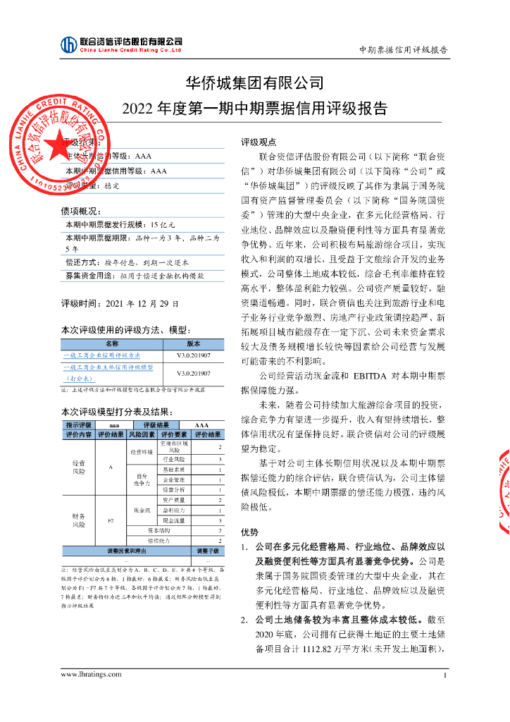 联合资信:华侨城集团有限公司2022年度第一期中期票据信用评级报告及跟踪评级安排.pdf