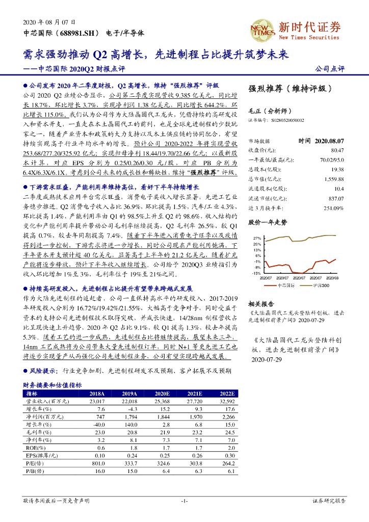诚通证券:中芯国际2020Q2财报点评:需求强劲推动Q2高增长,先进制程占比提升筑梦未来.pdf