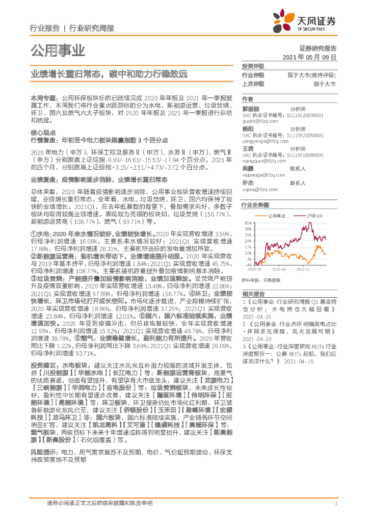 天风证券:公用事业行业研究周报:业绩增长重归常态,碳中和助力行稳致远.pdf