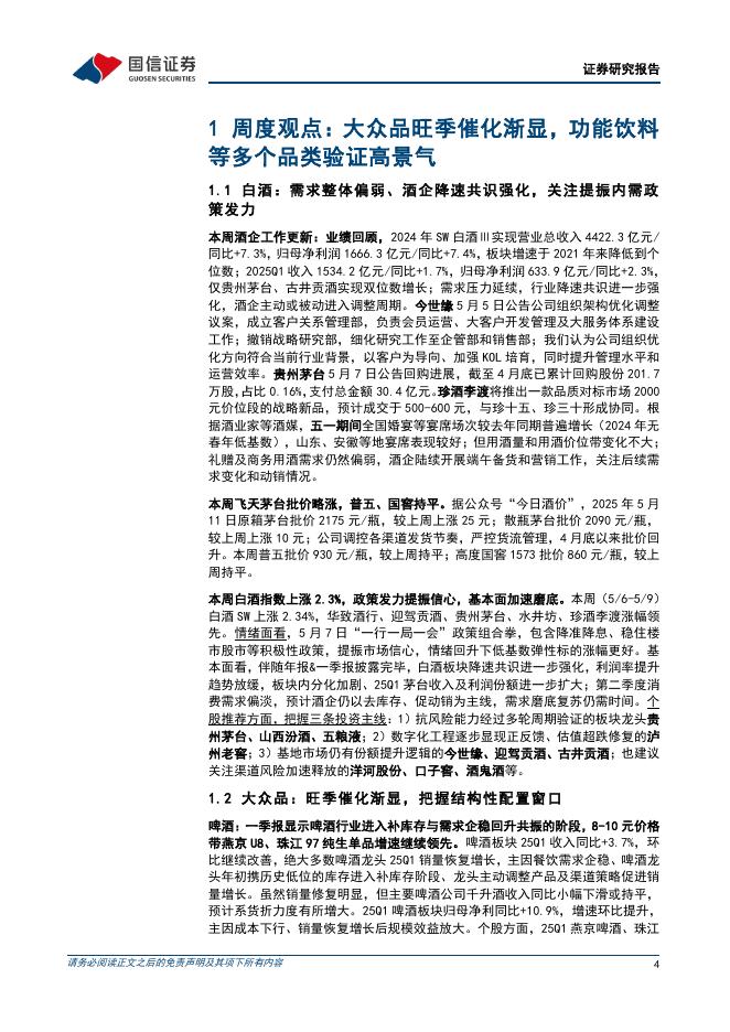 国信证券:食品饮料行业周报(25年第19周):大众品旺季催化渐显,功能饮料等多个品类验证高景气.pdf