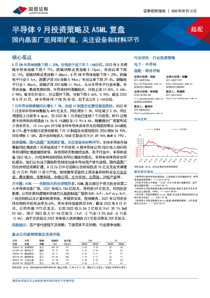 国信证券:半导体9月投资策略及ASML复盘:国内晶圆厂逆周期扩建,关注设备和材料环节.pdf