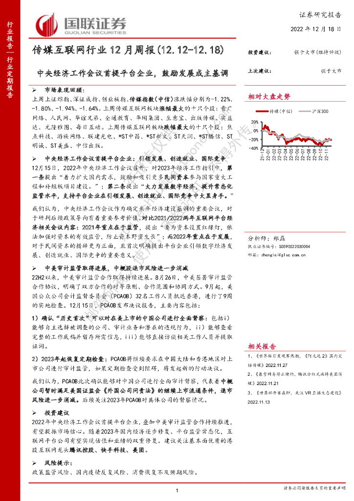国联证券:传媒互联网行业12月周报:中央经济工作会议首提平台企业,鼓励发展成主基调.pdf