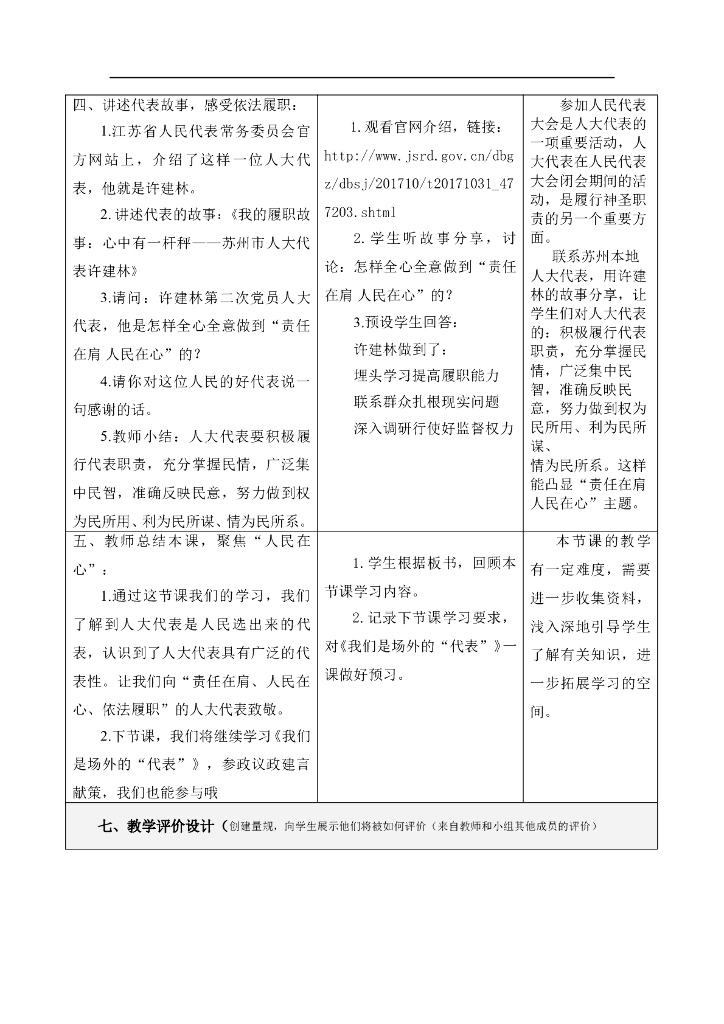 道德与法制6.人大代表为人民教案 第2课时 教案.doc