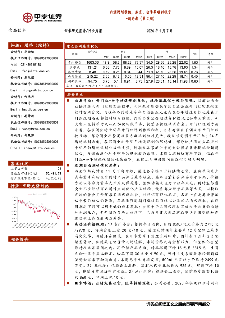 中泰证券:食品饮料周思考(第2周):白酒规划稳健,燕京、盐津等顺利收官.pdf