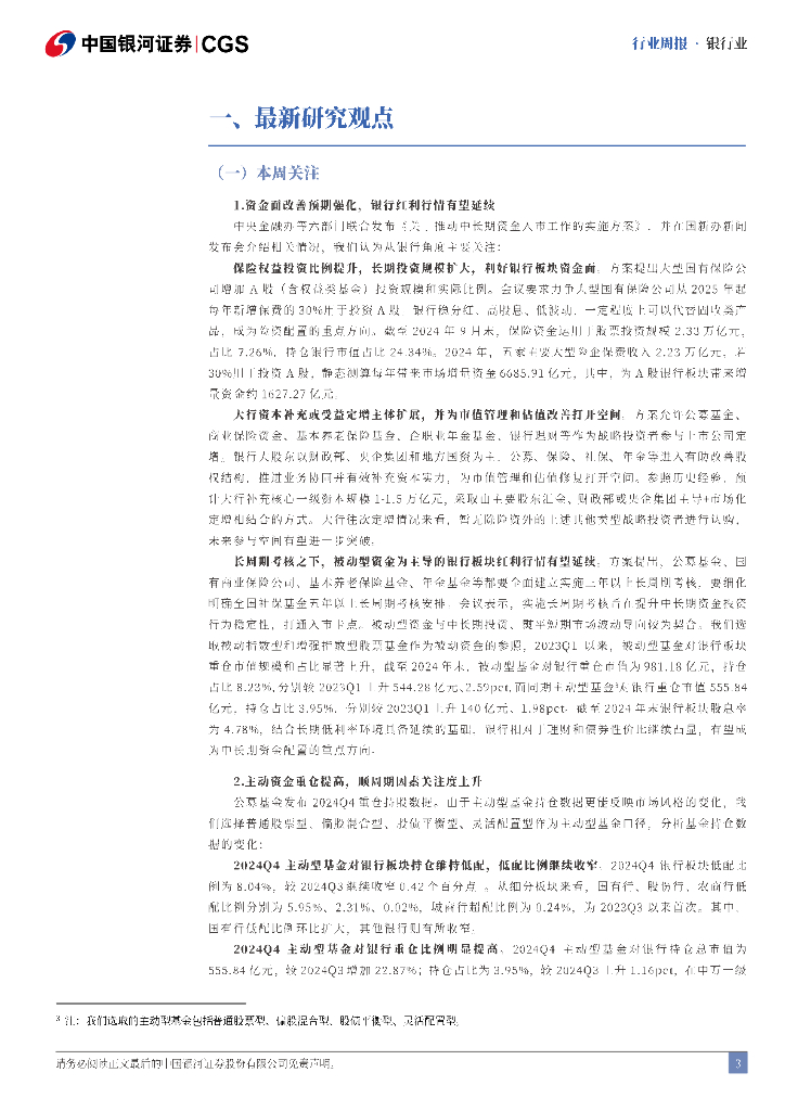 中国银河:银行业周报:中长期资金入市利好资金面,银行重仓比例上升.pdf