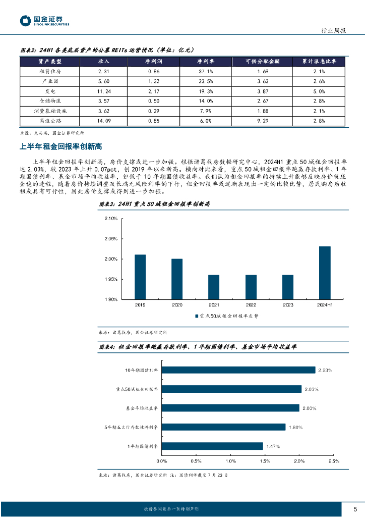 国金证券:房地产行业研究:REITs整体盈利较好,租金回报率持续上升.pdf