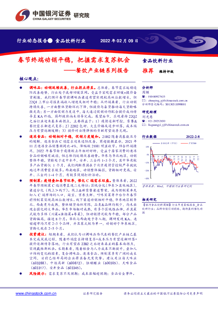 中国银河:食品饮料行业:餐饮产业链系列报告:春节终端动销平稳,把握需求复苏机会.pdf
