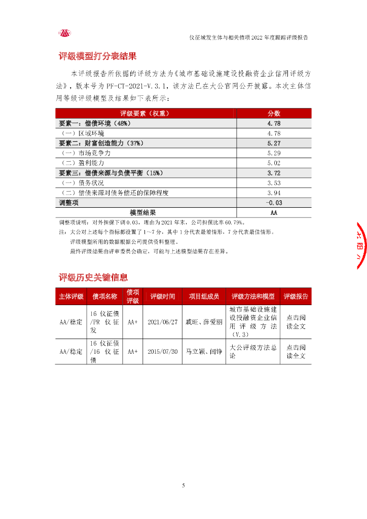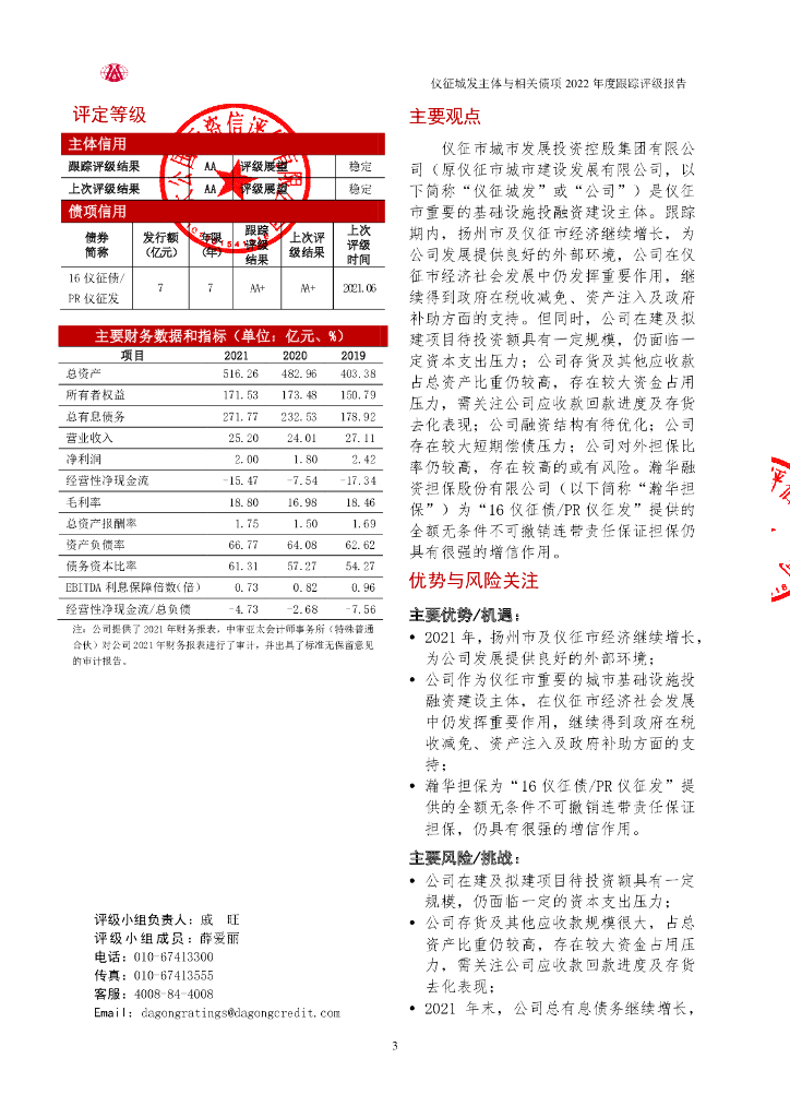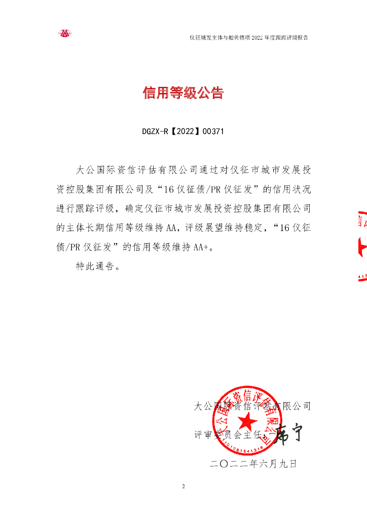 大公:仪征市城市发展投资控股集团有限公司主体与相关债项2022年度跟踪评级报告.pdf