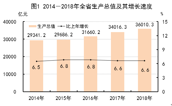 2018年,在省委、省政府正确领导下,各地各部门以习近平新时代中国特色社会主义思想为指导,深入学习贯彻党的十九大精神,全面落实党中央、国务院决策部署,坚持稳中求进工作总基调,牢固树立新发展理念,以供给侧结构性改革为主线,按照高质量发展要求,全面落实“3689”工作思路,真抓实干、拼搏竞进,国民经济稳中向好、稳中有进,质量效益不断提高,产业结构更趋优化,新动能加快成长,生态环境明显好转,人民生活持续改善,社会事业全面进步,经济社会发展取得新成就,朝着全面建成小康社会目标迈出坚实步伐。
