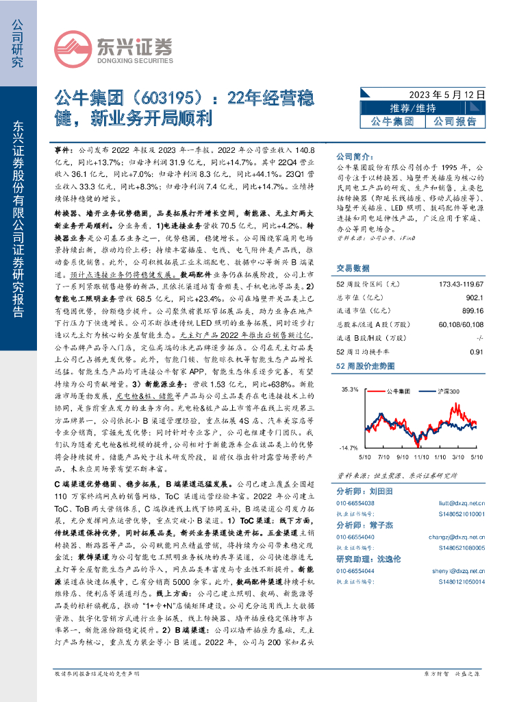 东兴证券:公牛集团(603195)-22年经营稳健,新业务开局顺利.pdf