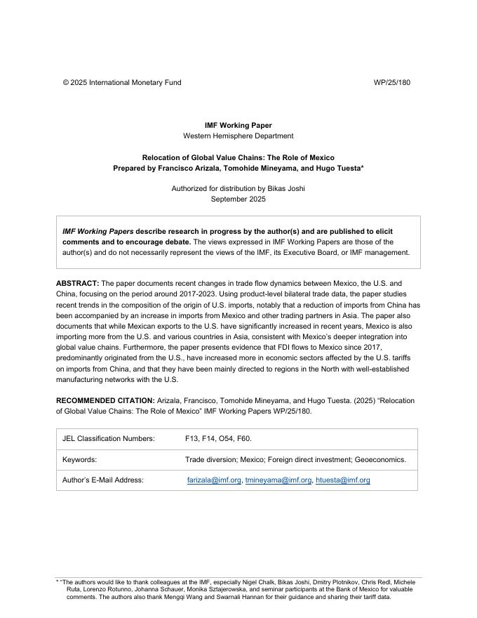 国际货币基金组织:全球价值链的重新定位:墨西哥的作用(英文版).pdf