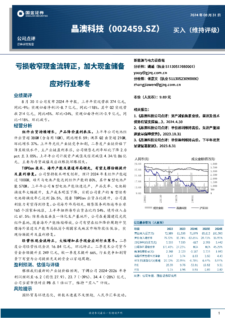 国金证券:晶澳科技(002459)-亏损收窄现金流转正,加大现金储备应对行业寒冬.pdf