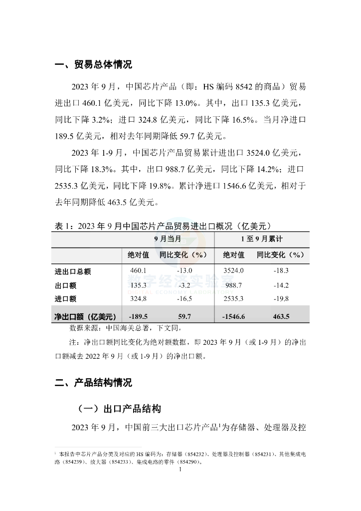 对外经济贸易大学:中国芯片产品贸易月度(2023年1-9月)监测报告.pdf