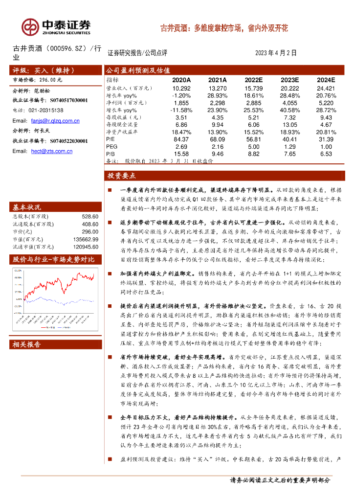 中泰证券:古井贡酒:多维度掌控市场,省内外双开花.pdf