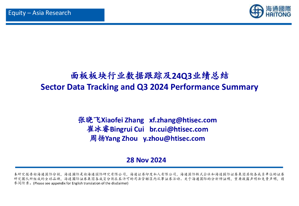 海通国际:面板板块行业数据跟踪及24Q3业绩总结.pdf