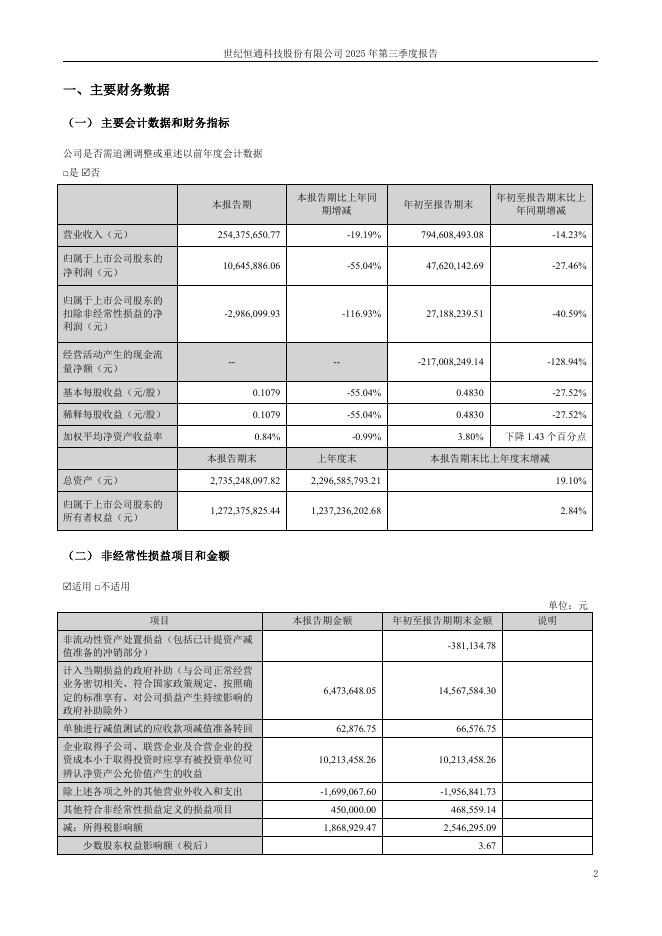 301428-世纪恒通:2025年三季度报告.pdf