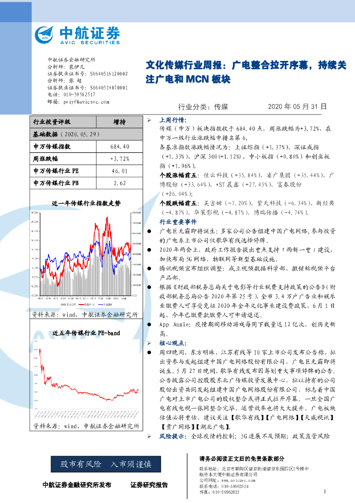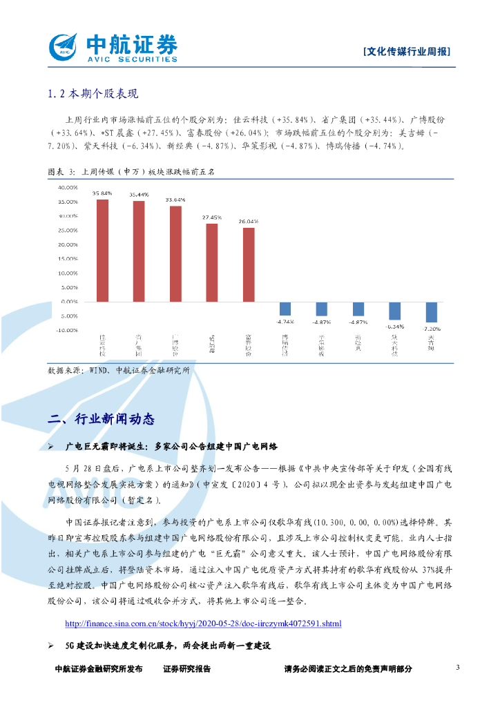 中航证券:文化传媒行业周报:广电整合拉开序幕,持续关注广电和MCN板块.pdf