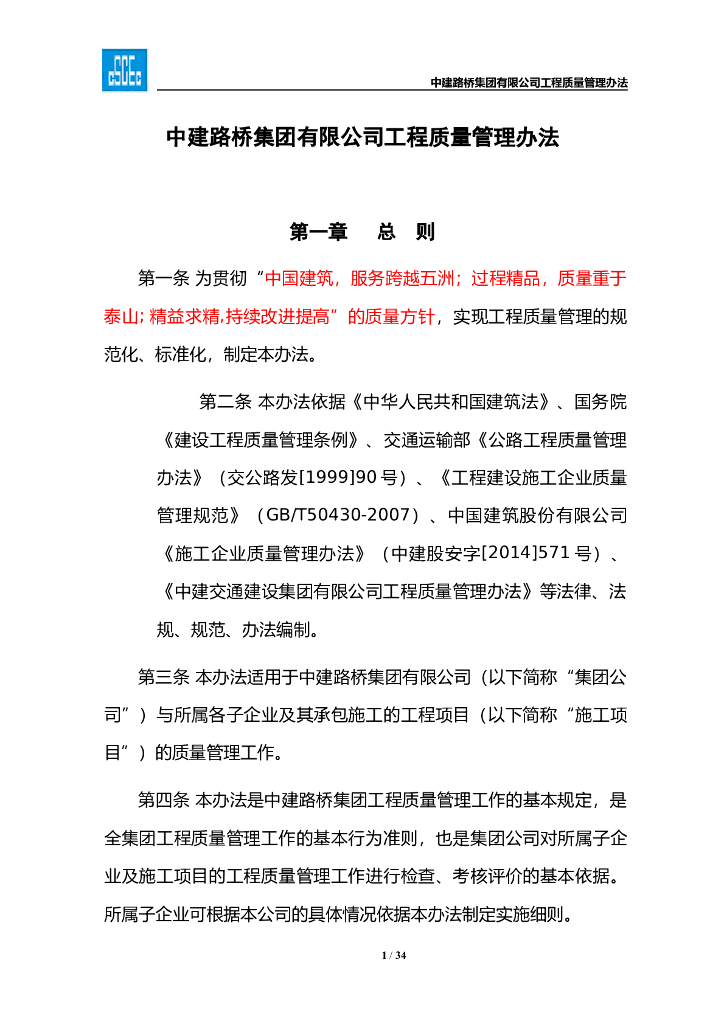 中建路桥集团质量管理办法word.doc